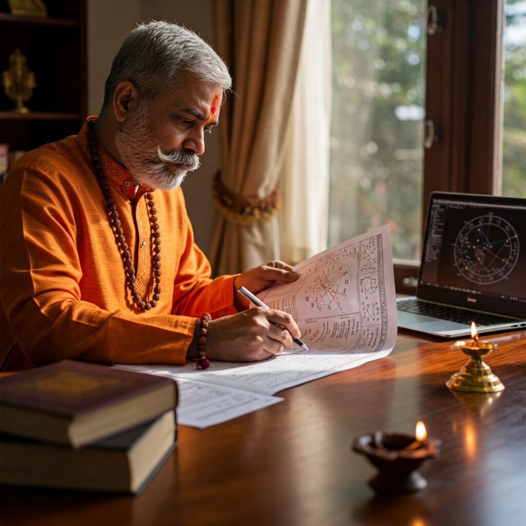 आधुनिक सॉफ़्टवेयर और पारंपरिक विधियों के माध्यम से कुंडली का निर्माण किया जाता है (लग्न कुंडली, चंद्र कुंडली, नवांश कुंडली आदि)।