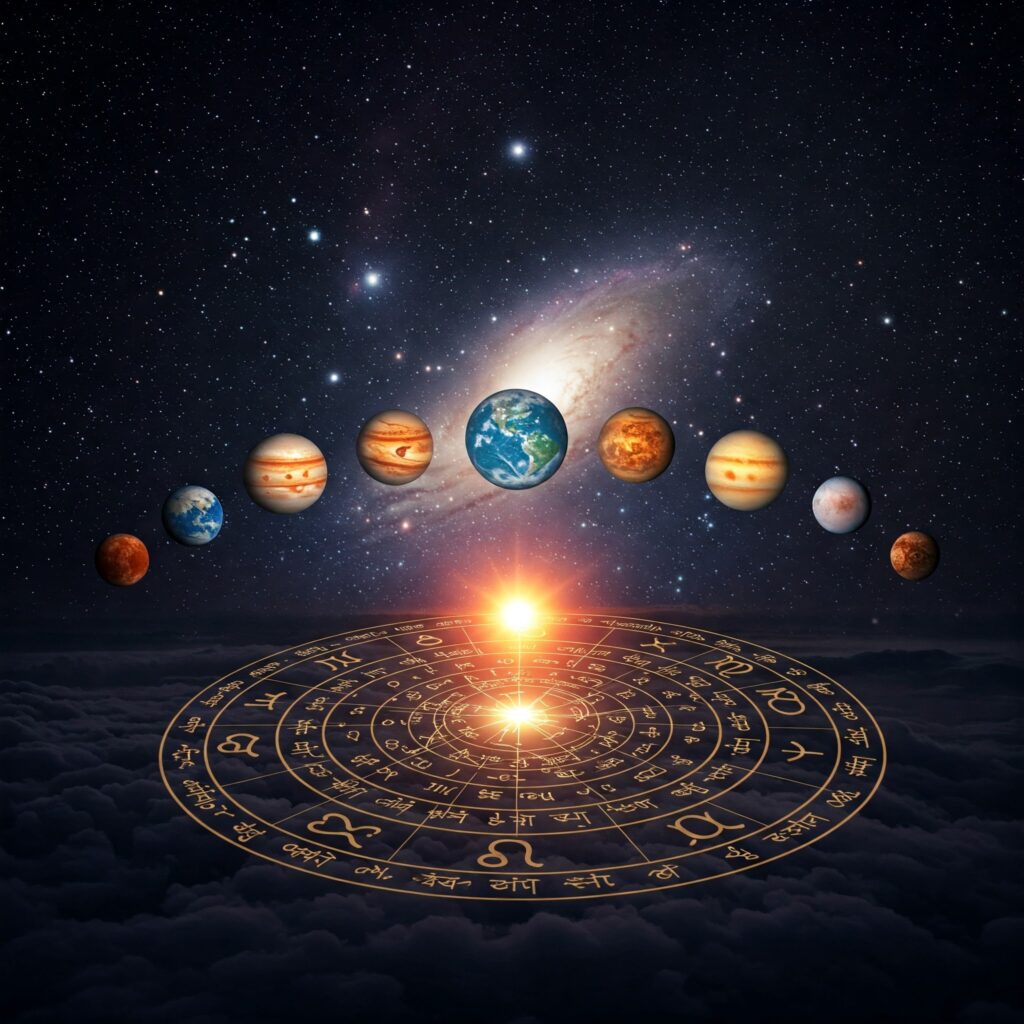 सभी नौ ग्रहों की स्थिति, दृष्टि, गोचर और युति का गहन अध्ययन किया जाता है।